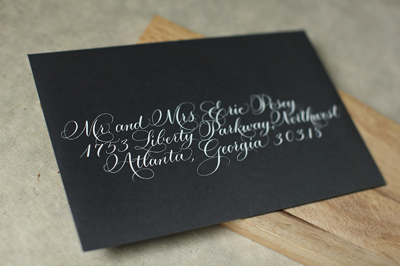 We are proud to offer both computer calligraphy and hand calligraphy guest addressing services for our save the dates, wedding invitations and thank you cards.