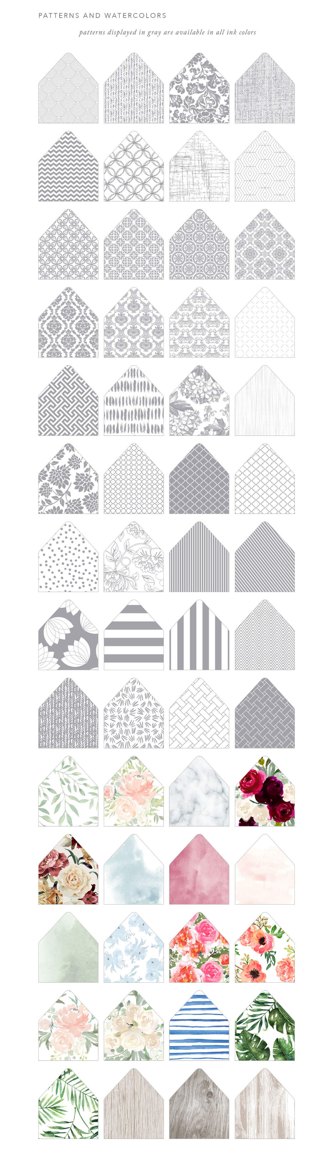 All of our envelopes include complimentary return address printing on the back flap, though there is always the option to order the envelopes blank should you choose to stamp or letter them yourself.